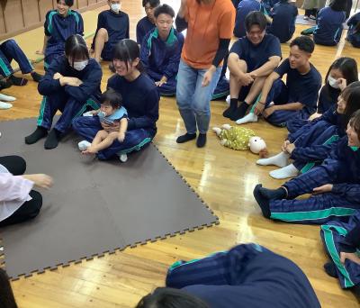 当日、数組の赤ちゃんとお母さん・お父さんをゲストにお迎えしました。生徒たちは、赤ちゃんとのふれあいや抱っこを体験し、終始笑顔あふれる時間となりました。