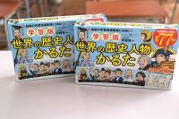 幻冬舎の『世界の歴史人物かるた』を活用。視覚と聴覚をフルに使い、重要人物77名とその関連事項を楽しく定着させます。