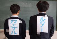 自分の背中に貼られた人物名を、周囲への「Yes/No形式」の質問から推測します。多くの生徒と交流しながら思考力を駆使する活動です。